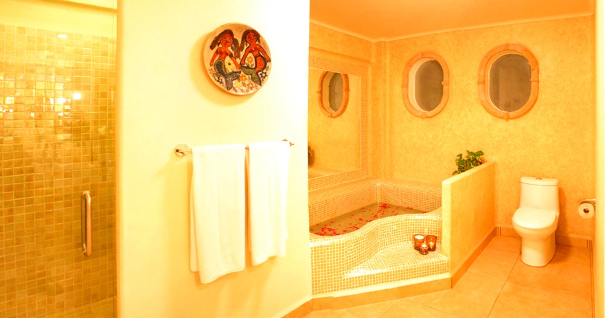 The most luxurious room in our hotel is our Master Suite. It has a king-size bed with a pillow-top mattress, 32 inch LCD TV, cable television, air-conditioning, ceiling fan, bottled water and free WiFi. The large bathroom includes an enormous soaking tub and separate walk-in shower. It has a private balcony with a table and chairs which overlooks a small park. This suite is ideal for newlyweds.