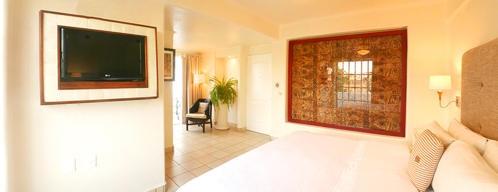 While each room in Hotel Mision de los Arcos is unique, the amenities offered are the same. All of our standard rooms have air-conditioning, ceiling fans, cable television, 32 inch LCD TV, pillow-top mattresses, bottled drinking water and free WiFi. The majority of our standard rooms also have private balconies.